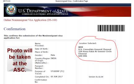 On June 5th, 2017, I filled in the Online Nonimmigrant Visa Application form (DS160), where in I opted for U.S. Consulate in Chennai to schedule my appointments for both the Visa Application Center (Biometrics) and the F1 visa interview at the Embassy or Consulate. However, I have not yet scheduled my appointments yet.